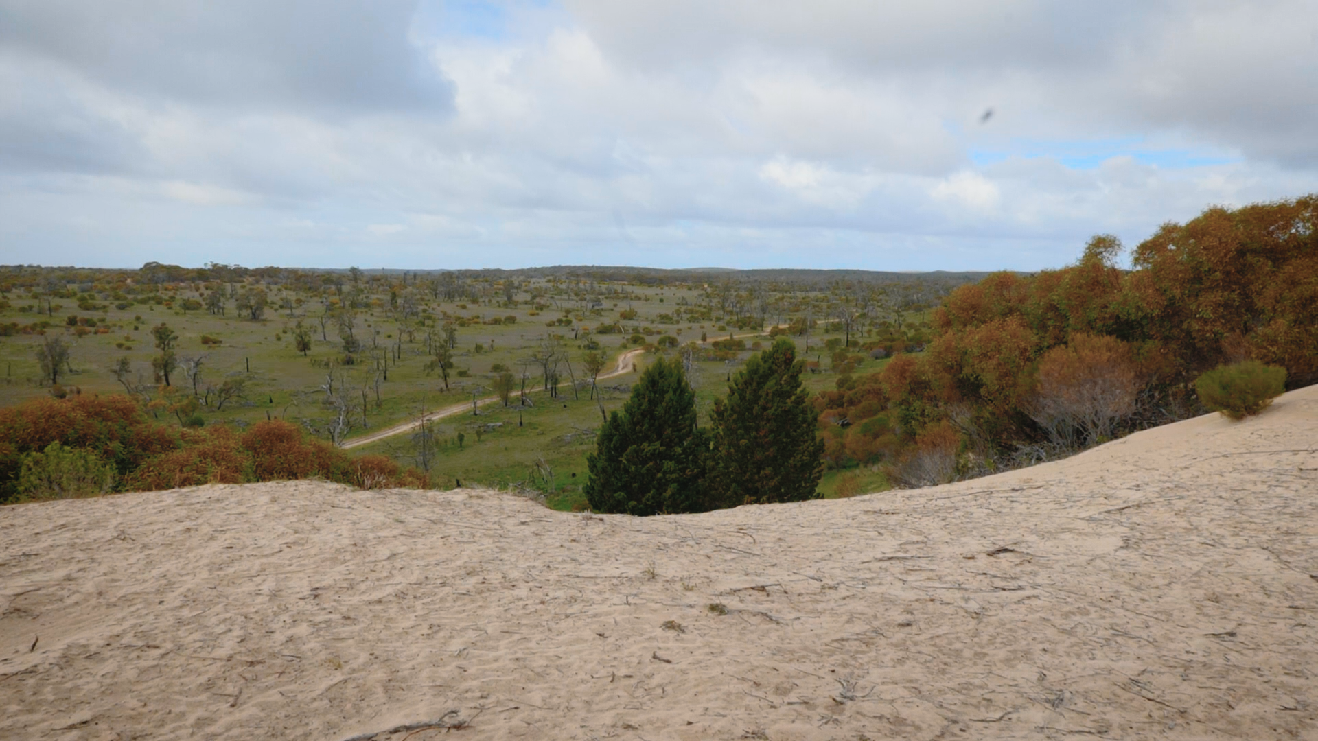 If the surrounding towns are a time capsule from a century ago, Wyperfeld is a time capsule of millennia ago. Agricultural fields give way to native open mallee scrubland. A pack of emus dart across the road. Stumpy lizards hastily retreat out of harm's way. Mobs of red kangaroos crowd the edges.