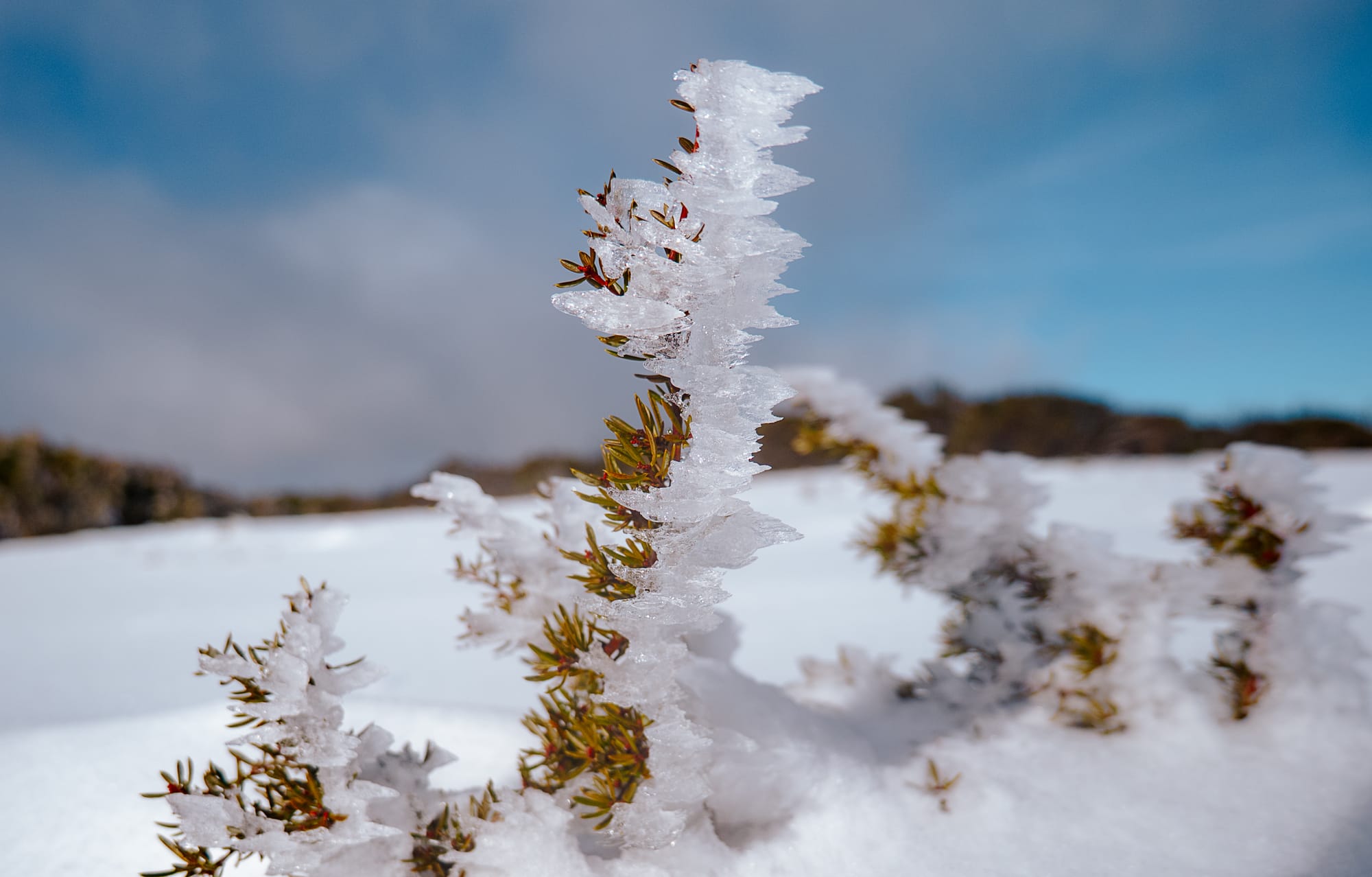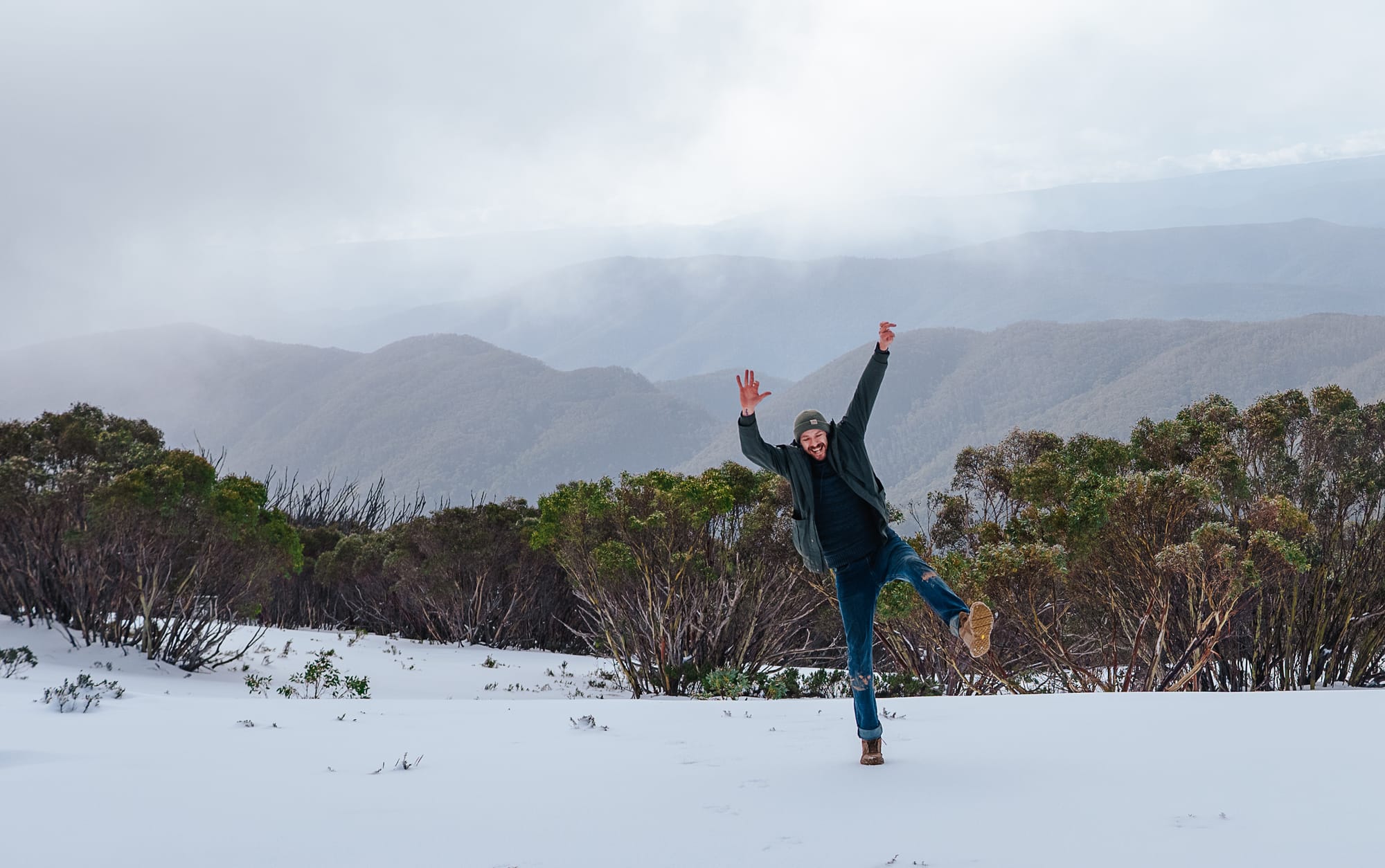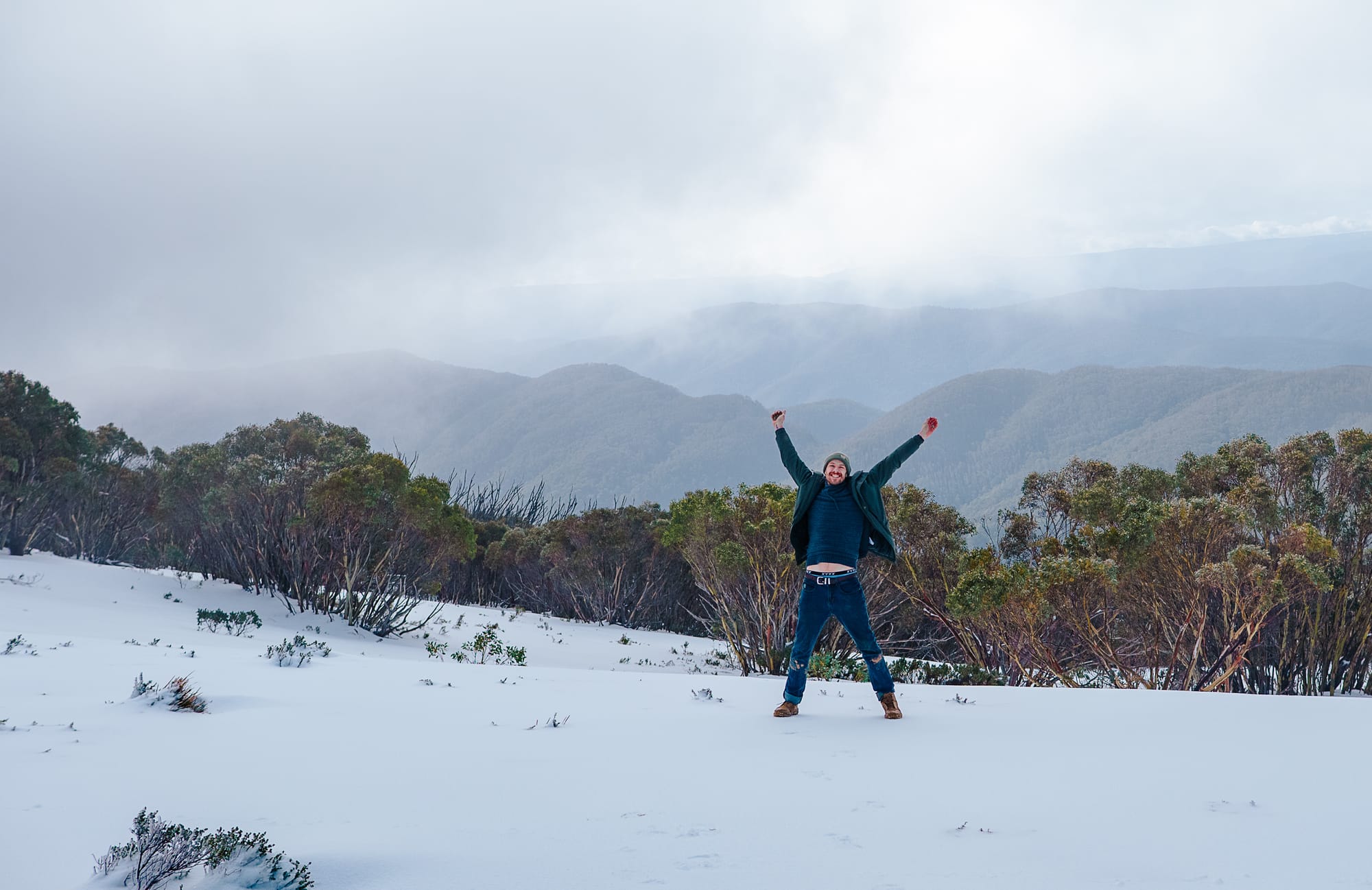 The plan for day 3 was to head back over the mountain and have another look. Given the stunning morning, I was glad that was a case. It turned out to be a stark contrast to the previous day, clear blue skies, warm sun, the sound of melting ice slipping and trickling off the snow gums. So awesome. Despite the sore heads, everyone was all smiles.